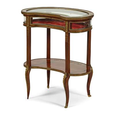 FRENCH MAHOGANY AND GILT METAL MOUNTED KIDNEY-SHAPED BIJOUTERIE TABLE