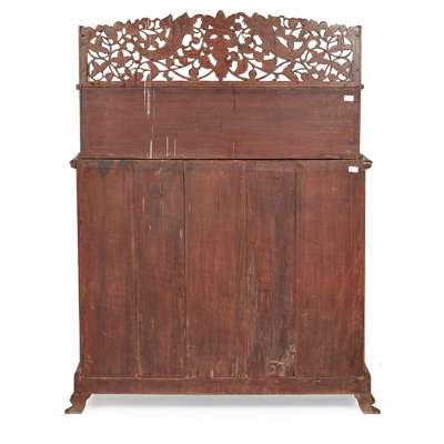 INDIAN CARVED 'BLACKWOOD' SIDE CABINET AND HANGING CUPBOARD, PROBABLY BOMBAY PRESIDENCY