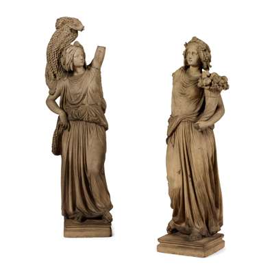 the first a figure of Demeter holding a cornucopia, the other possibly Diktynna with a fisherman's net, impressed marks E. MARCH SÖHNE/ CHARLOTTENBURG/ BEI BERLIN