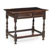 the top with a moulded edge above a long recessed panel frieze drawer, on baluster turned legs joined by a peripheral stretcher