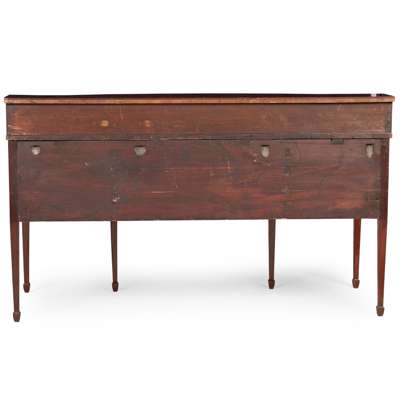 GEORGIAN MAHOGANY AND INLAID SERPENTINE STAGEBACK SIDEBOARD