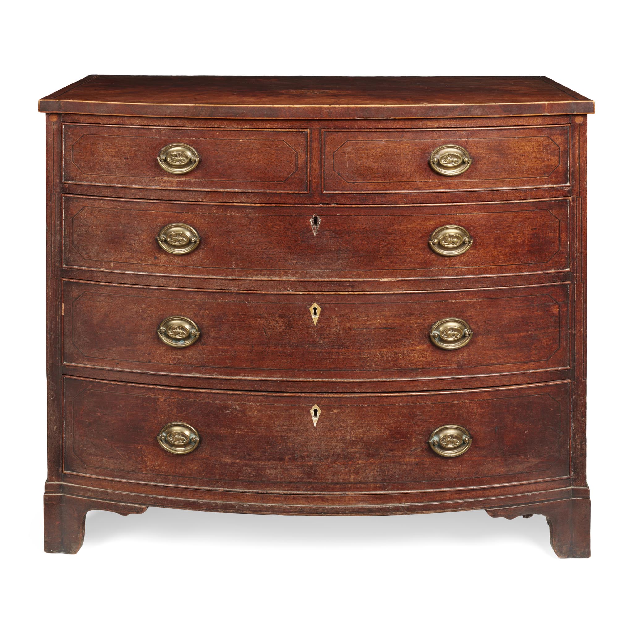 LATE GEORGE III MAHOGANY AND INLAID BOWFRONT CHEST OF DRAWERS Y