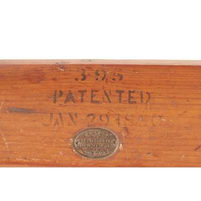 with glass eyes, horse hair mane and tail and partial original leather tack, on a trestle support and turned columns, the base stamped 395 PATENTED JAN 29 1880 with metal plaque stamped F.H. AYRES/ MANUFACTURERS/ 111 ALDERGATE ST/ LONDON