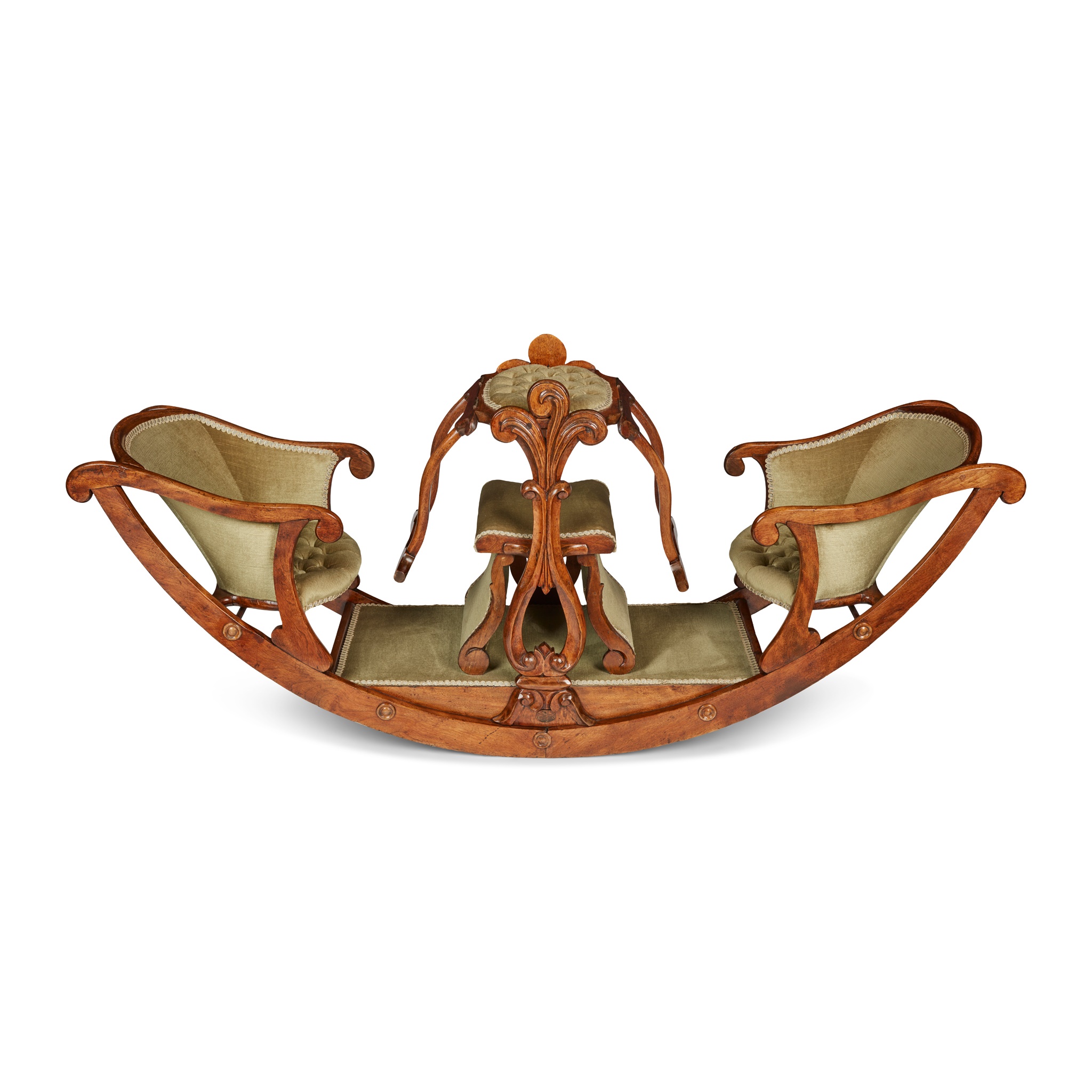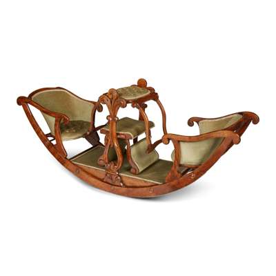EARLY VICTORIAN WALNUT CHILD'S DOUBLE ROCKING CHAIR