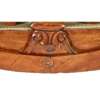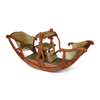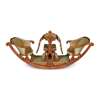 with twin scroll back chair and central platform covered in green plush upholstery, on integrated rocking rails with roundels