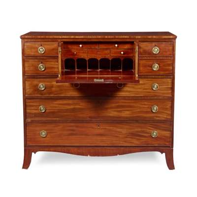LATE GEORGE III MAHOGANY SECRETAIRE CHEST OF DRAWERS Y