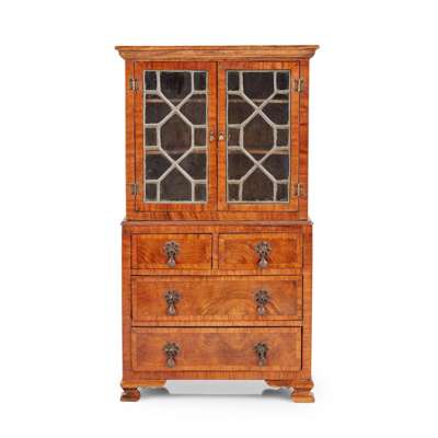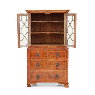 MINIATURE GEORGE II STYLE WALNUT BOOKCASE-ON-CHEST