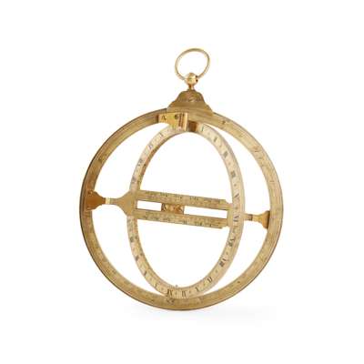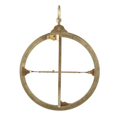 9-inch, in lacquered brass, signed under the degree scale 'Dolland, London', the pivoted inner chapter ring with hours I-XII-I-XII divided to 5 minutes, the outer equinoctial ring with degree scale 90-0-90° and declination scale to reverse, the pivoted bridge with sliding pinhole gnomon on calendrical and zodiac scales, the rim with sliding suspension loop