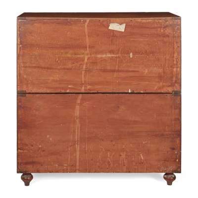 MAHOGANY AND ROSEWOOD BRASS BANDED SECRETAIRE CAMPAIGN CHEST Y