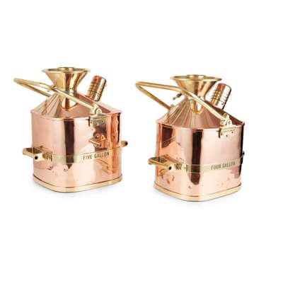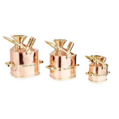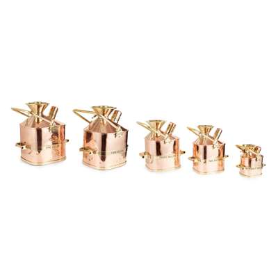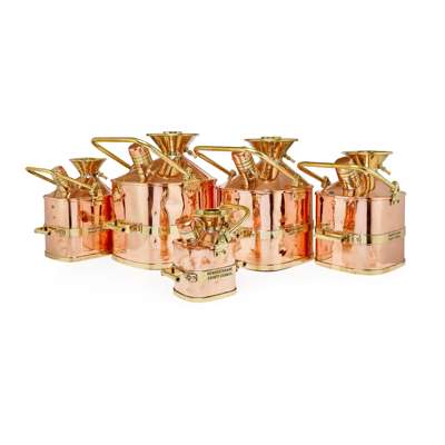GRADUATED SET OF FIVE COPPER AND BRASS FUEL MEASURES