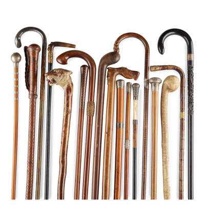 LARGE COLLECTION OF WALKING STICKS, PARADE STICKS, AND CANES