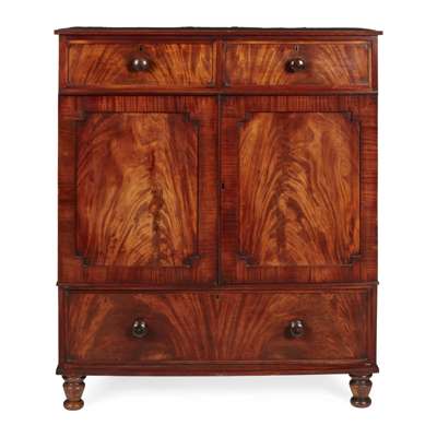 LATE GEORGE III MAHOGANY LOW PRESS CUPBOARD