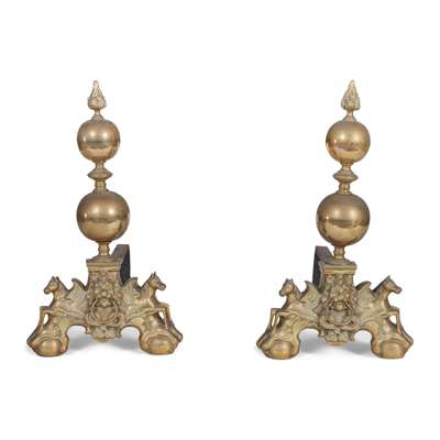 PAIR OF LARGE DUTCH BRASS ANDIRONS