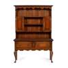 the moulded cornice above a wavy frieze and three closed-back shelves flanked by panel cupboard doors; the base with two deep frieze drawers above a corresponding apron, raised on cabriole legs ending in pad feet