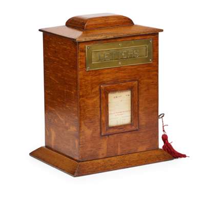 with a brass post flap labelled LETTERS, above a glazed window displaying collection times