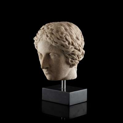 wearing a Julio-Claudian hairstyle and headband, on a bespoke stand