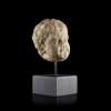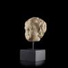 carved stone, depicted with curled locks and a full face, remnants of umber pigment remain, raised on a bespoke mount