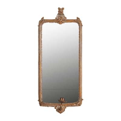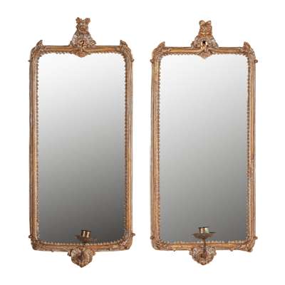 the divided mirror plates in moulded frames surmounted by rocaille and issuing single scrolling candle arms