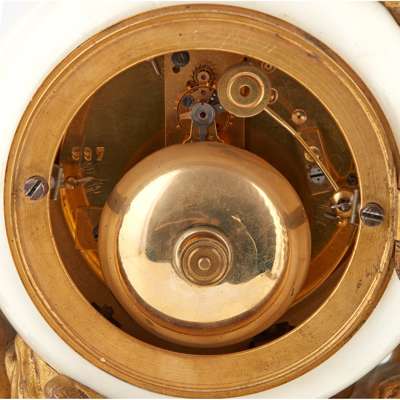 FRENCH SMALL WHITE MARBLE AND GILT BRONZE MANTEL CLOCK