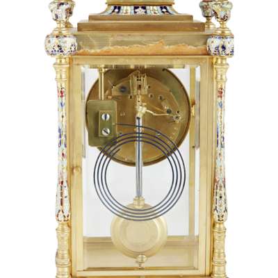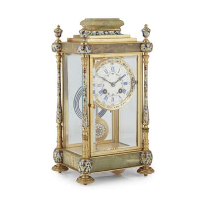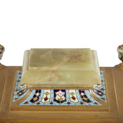 FRENCH GREEN ONYX AND CHAMPLEVÉ ENAMEL MANTEL CLOCK