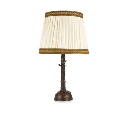 the shaft in the form of a bamboo stalk with climbing snails, on a domed foot, fitted for electricity, with a pleated shade