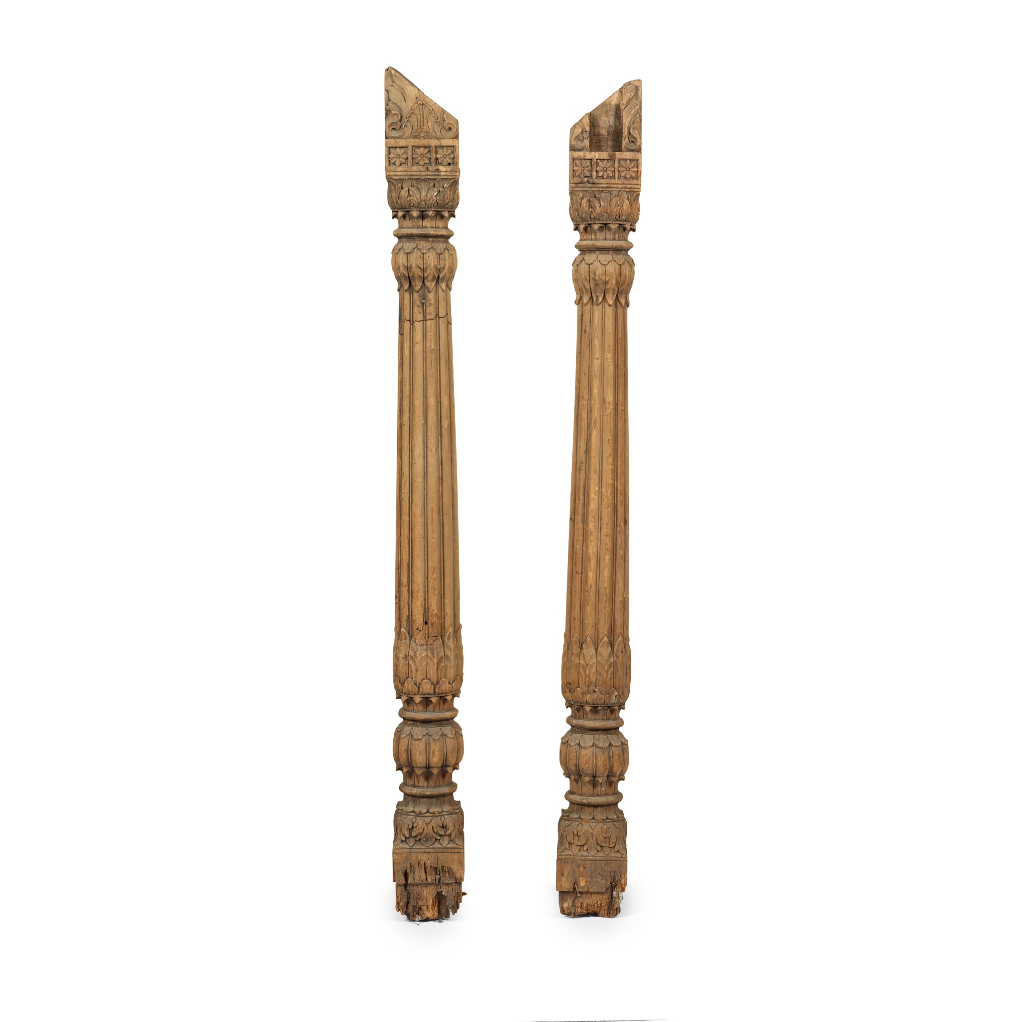 carved with stiff leaf and acanthus capitals above lotus capped reeded columns and foliate carved and lobed bases