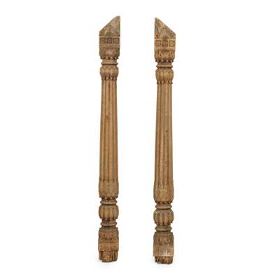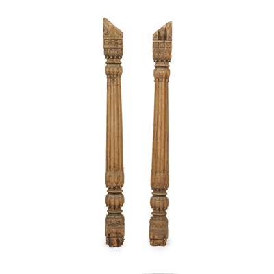 PAIR OF LARGE INDIAN CARVED HARDWOOD ARCHITECTURAL COLUMNS