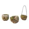 of rough carved boulder form with hollowed centres, one set with a later large iron loop