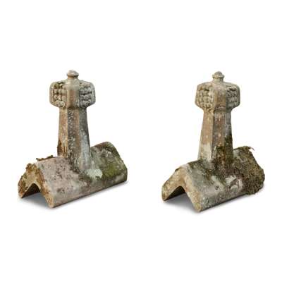 GROUP OF CARVED SANDSTONE ROOF RIDGES AND PEDIMENTS