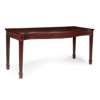 the serpentine top with a moulded edge above a fluted frieze, raised on square tapered and fluted legs ending in block feet