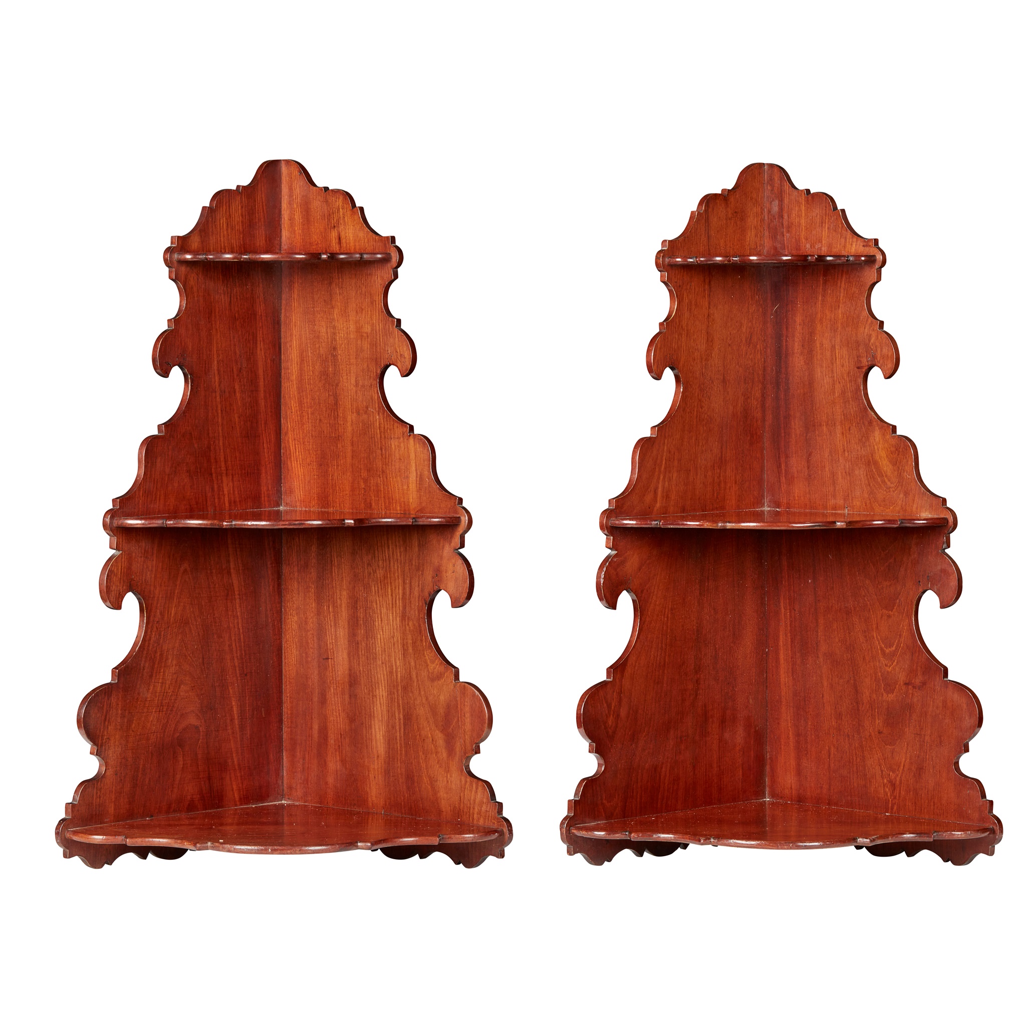 PAIR OF GEORGIAN MAHOGANY HANGING CORNER SHELVES