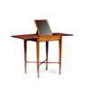 the bisected hinged top opening to a ratchet adjusted mirror and compartments, raised on slender square tapered legs joined by an X stretcher and ending on spade feet