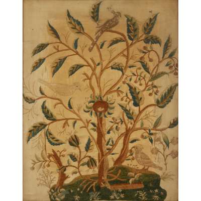 GEORGIAN SILK NEEDLEWORK 'TREE OF LIFE' PICTURE