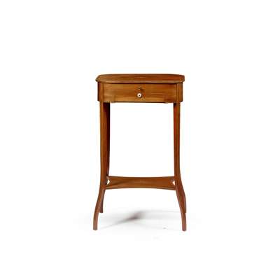 LATE GEORGE III MAHOGANY AND INLAID WORK TABLE