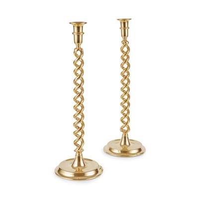 PAIR LARGE EDWARDIAN BARLEY TWIST BRASS CANDLESTICKS