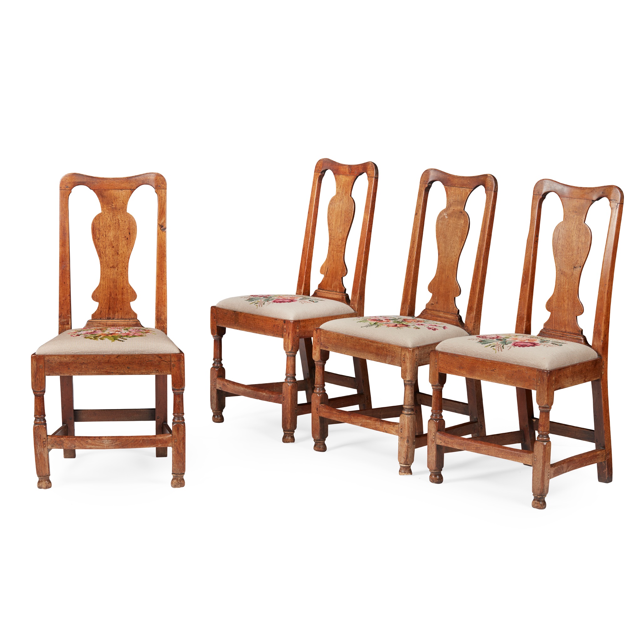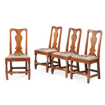 SET OF FOUR GEORGE I PROVINCIAL OAK SIDE CHAIRS