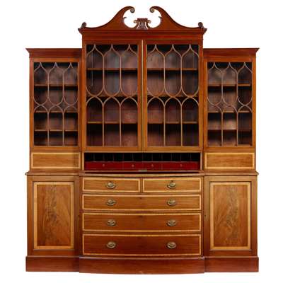 GEORGE III MAHOGANY AND SATINWOOD BREAKFRONT BOOKCASE