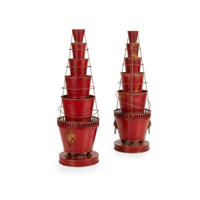 PAIR OF RED AND GILT TOLE JARDINIERES