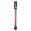 the broken arch pediment above a silvered brass vernier scale signed 'Alexander Paterson Fecit/ Banff', above a slender trunk with visible mercury filled tube terminating in a hemispherical cistern cover