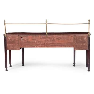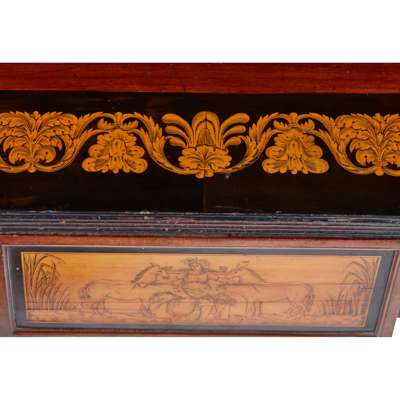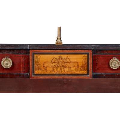 REGENCY MAHOGANY, FRUITWOOD, EBONISED, AND PENWORK SIDEBOARD