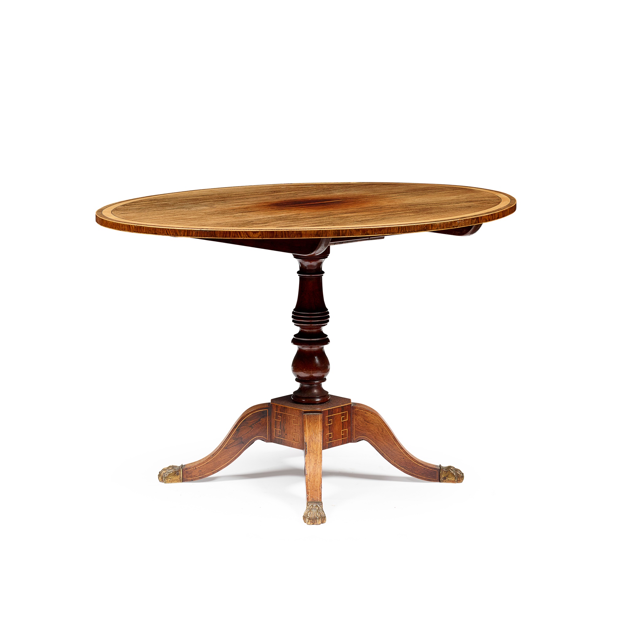 REGENCY ROSEWOOD AND SYCAMORE OVAL BREAKFAST TABLE, W. WILLIAMSON & SONS, GUILDFORD