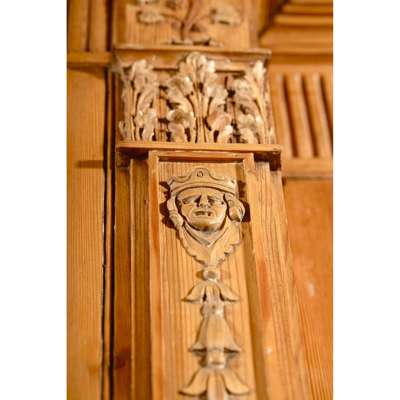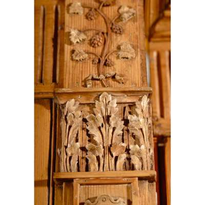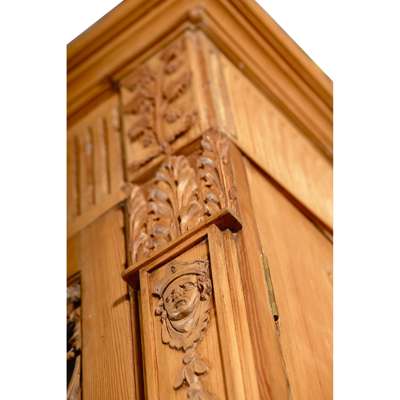 LARGE GEORGE III STRIPPED PINE BREAKFRONT BOOKCASE