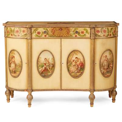 EDWARDIAN PAINTED AND PARCEL-GILT SIDE CABINET, PROBABLY MAPLE & CO.