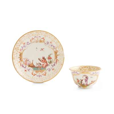TWO MEISSEN TEABOWLS AND SAUCERS