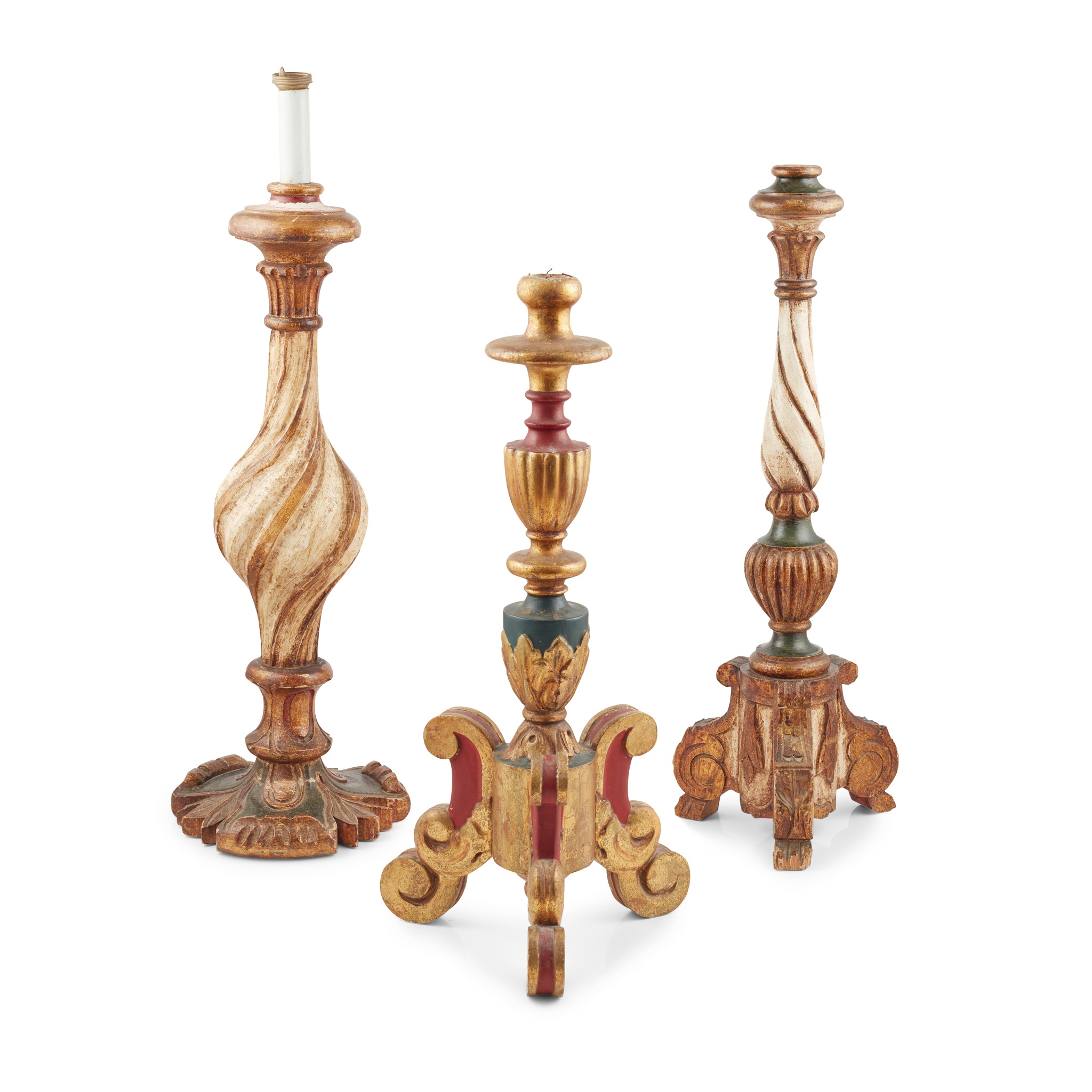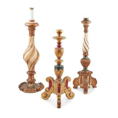 THREE SPANISH CARVED AND POLYCHROMED LAMP BASES
