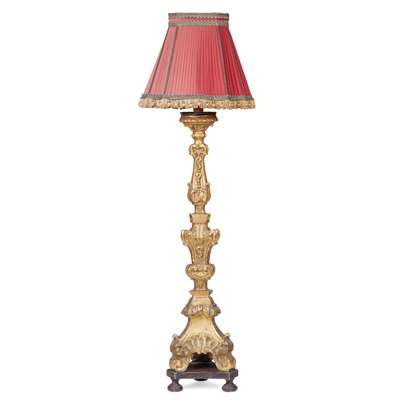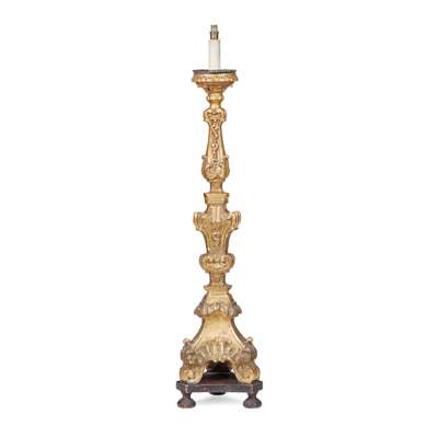 CONTINENTAL LARGE GILTWOOD PRICKET STANDARD LAMP
