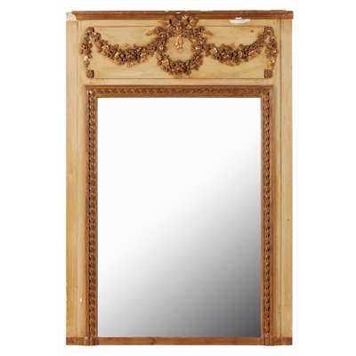 FRENCH PAINTED AND PARCEL-GILT TRUMEAU MIRROR