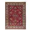 the red field with allover stylised palmette and foliate pattern, within ivory border