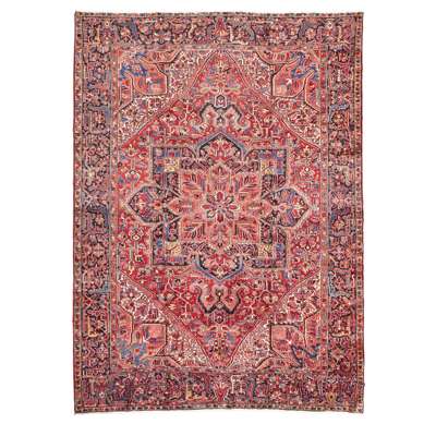 the red field with indigo and pink medallion, ivory and pink spandrels, within indigo border