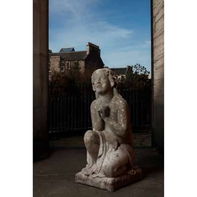 SCOTTISH SCHOOL, CARVED GRANITE FIGURE OF A KNEELING BOY